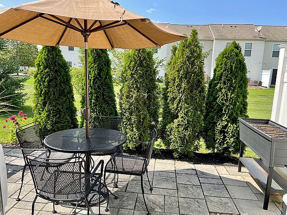 Well kept/move in condition End Unit Condo in quiet neighborhood. Upgraded in 2018 and 2019. Utilities and taxes very reasonable. New upgrades completed in 2018 and 2019 which include the following: Nest thermostat Pull down attic steps for additional storage Luxury vinyl floor entire first floor as well as luxury vinyl in master bath. New carpet throughout Master Bath/Powder Room New cabinets, new toilet, lighting and bath fixtures Kitchen Cabinets refinished. New granite counter tops. New kitchen faucet. New stove and dishwasher. Patio Privacy fence on both sides of patio as well as a row of Arborvitae to maintain deck privacy
