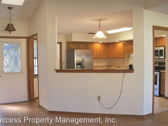 Clean 3 bedroom, 2 bath, oversize 2-car attached garage - Spacious 3 bedroom, 2 bath home with oversize 2-car garage. Large kitchen has newer stainless steel appliances, lots of cabinets, plus pantry. Eat-in kitchen plus formal dining area. Good-size great room has 3 sliding glass doors that open to screened Florida room. Master bedroom large enough to fit king-size bed. Walk-in closet. Ceiling fans throughout; no carpet. Privacy fence in back yard and shed. Wash tub in utility room. Pet friendly with approval. (RLNE5501148)