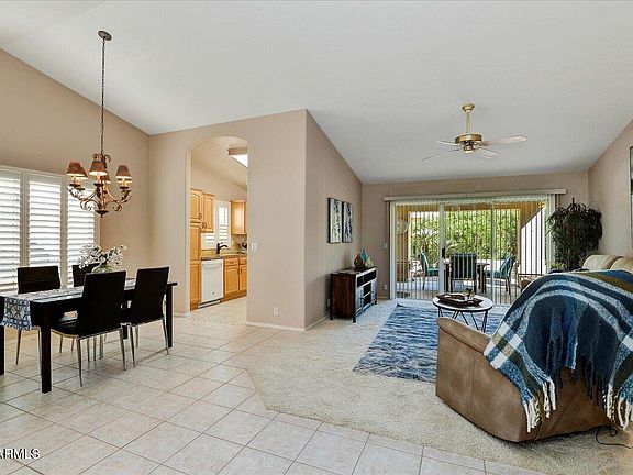 You wont want to miss this St. Thomas model in popular Country Club Estates! A favorite amongst the floor plans featuring vaulted ceilings, wood look shutters and split bedrooms! Spacious living room and formal dining room. Walk into the kitchen with granite counters, tile flooring and tile backsplash. Eat-in kitchen is perfect for your morning coffee or more casual occasions. Double doors lead to the large primary bedroom suite. Primary bath features gorgeous tile shower, double sinks and oversized closet. The 2nd bedroom is a perfect guest suite or hobby room. Guest bathroom also features a tile shower. Finally, walk outside to your covered patio to enjoy this AZ weather! Westbrook Village features 2 18-hole championship golf courses, pools, pickleball, restaurants and more!