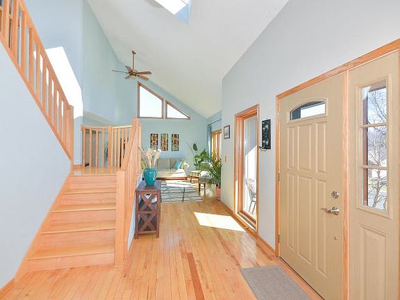Unique 4 Bdrm Home on wooded/private cul-de-sac lot! Spacious entertaining spaces in/out! Beautiful maple hwd flr thru-out, well-appointed Kit reno w/ss appl, granite & cherry cabs. Light abounds from trapezoid windows & updated Master Suite - a must see! Wonderfully located near Nature Preserve, walking/biking trails, parks/plygrnds & Bush Lake Beach just a short drive! New 1st & 2nd flr Pella windows & new roof '13. Stunning Kit reno & Mstr Suite w/his & hers closets & vanities!