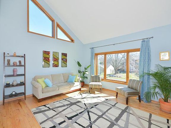 Unique 4 Bdrm Home on wooded/private cul-de-sac lot! Spacious entertaining spaces in/out! Beautiful maple hwd flr thru-out, well-appointed Kit reno w/ss appl, granite & cherry cabs. Light abounds from trapezoid windows & updated Master Suite - a must see!