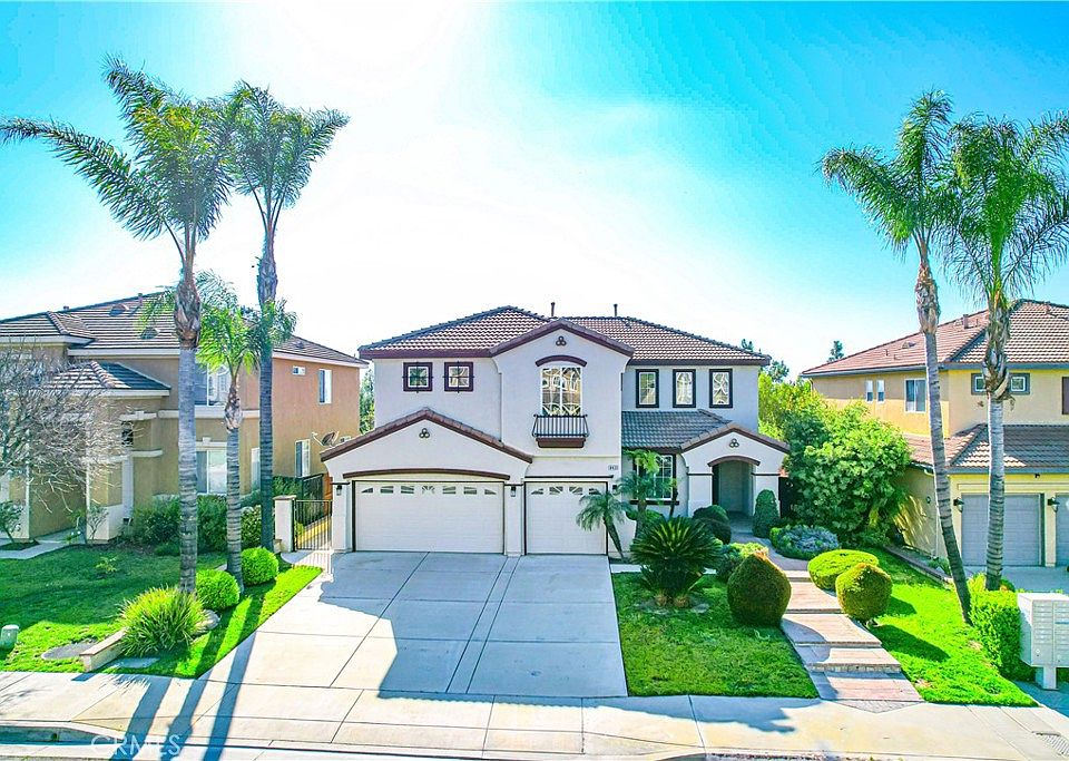 This exquisite Orange Crest residence is move-in ready and offers an exceptional panoramic view. Boasting 4 bedrooms, 3 bathrooms, and a spacious loft upstairs, this two-story home is designed for both comfort and style.Upon entry, you'll be greeted by a welcoming open floor plan, illuminated by an abundance of natural light, creating an inviting atmosphere. The main level features a convenient bedroom and full bathroom, perfect for guests or accommodating extended family members. The focal point of the home is the gourmet kitchen, complete with a sizable island and plenty of storage space. It seamlessly flows into the cozy family room, complemented by a charming fireplace. Additionally, a formal living room and dining room provide additional space for entertaining or relaxation. Upstairs, the expansive primary bedroom retreat awaits, offering a private balcony where you can enjoy the breathtaking views. The primary bathroom boasts dual sinks, a vanity station, a luxurious soaking tub, and a separate shower. A generously sized walk-in closet completes the primary suite. Outside, the covered patio invites you to entertain guests or simply unwind and enjoy the serene surroundings. With no Mello Roos or HOA fees, this home offers both convenience and affordability. Nestled in the sought-after Orange Crest community, this home is surrounded by top-rated schools, public facilities, and parks, including the Orange Terrace Community Park and athletic fields. Plus, you'll have easy access to a variety of dining and shopping options just nearby. Don't miss out on the opportunity to make this exceptional Orange Crest home your own. Schedule a showing today and experience luxury living at its finest.