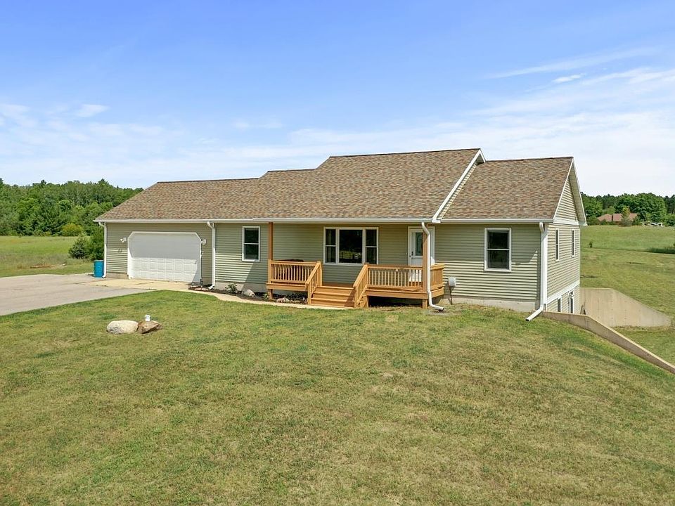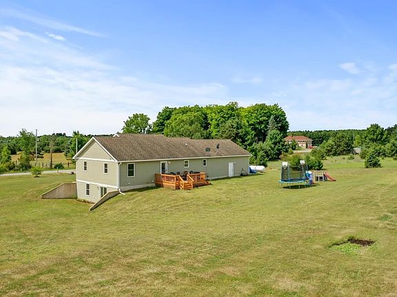 QUALITY built 4 bedroom 2 bath home on just under 4 acres! Amazing location with countryside views yet so close to town. A job relocation is moving the sellers on, but they have immensely enjoyed the open floor plan and all the space for family time in the basement. Walkout basement has one bedroom, tons of storage, and a room currently a kids playroom. Laundry hook-up both upstairs & down. Relax on your covered porch, back deck, or even by custom firepit area. Home has a 2 car attached garage and lots of room to build that pole barn.