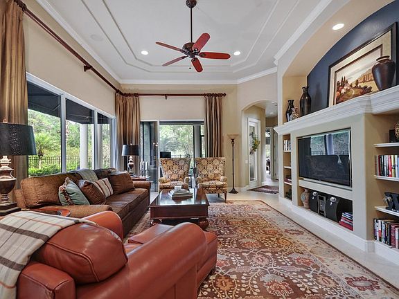 This Brentwood custom home is located on a private lot overlooking the Tibet-Butler Preserve in the 24-hour manned gate community of Keene's Pointe. Enjoy family living in five spacious Bedrooms & entertaining in three indoor-outdoor living spaces. The Living Room, Family Room, & Game Room open to the inviting, fenced Pool/Spa/Lanai with enviable views & serene environment. The house shows like a model, only better! Current owner painted entire interior, upgraded Kitchen, installed new landscaping, driveway & walkway pavers, landscape lighting, wall storage units in Garage, plantation shutters in Master Suite & Dining Room, and exterior awnings on back windows of the house. Enhance your entertaining experience with surround sound in the beautiful main floor living areas, a Butler's Pantry with beverage fridge, & spacious, well-appointed Kitchen. Step from the Family Room to a delightful, screened outdoor Living Room overlooking the backyard resort, with its natural stone Lanai & heated Pool & Spa with a waterfall feature. Retreat to the serene Master Bedroom with sitting area, access to the Lanai, two walk-in closets, & luxurious Master Bath. Provide privacy & space to family & guests with two additional Bedrooms on main floor & two more Bedrooms on the second. The upstairs Loft has a wall of built-ins with two desks. Even enjoy working in the Office, with its wall of built-ins & two-sided desk. This is a fabulous find that will impress.