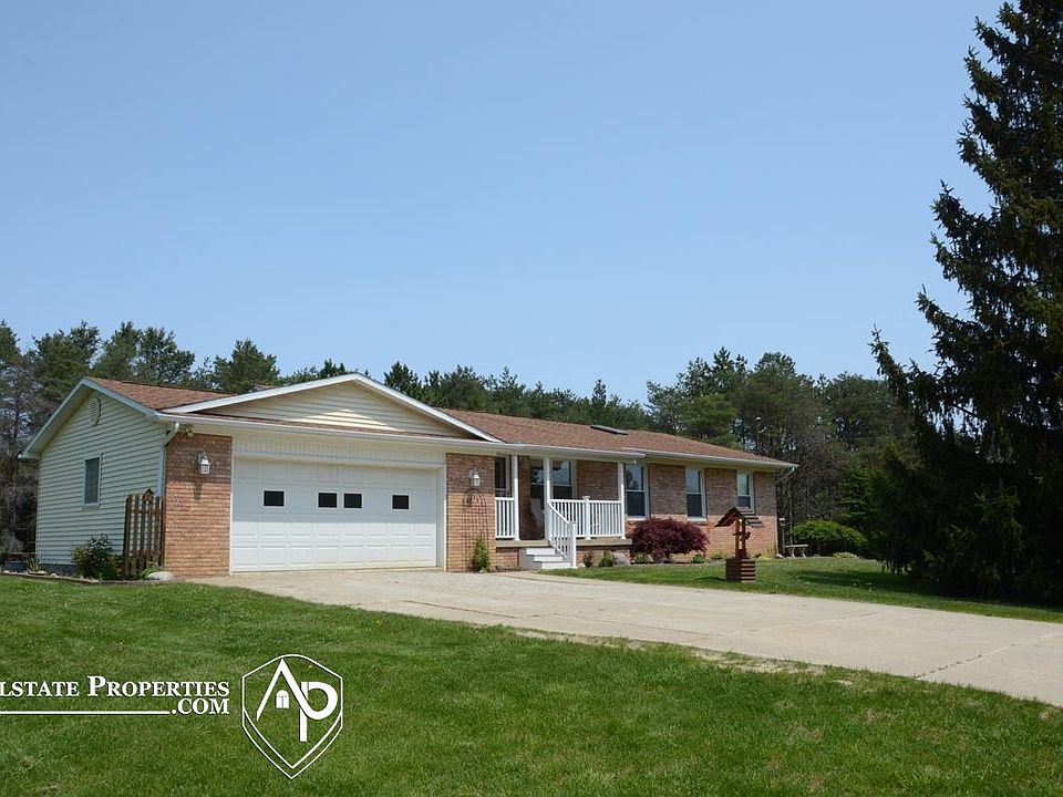 This Beautiful Ranch located on 7.49 gorgeous acres has it all. 4 bedrooms. 2 Full Bathrooms and 1 half bathroom. Custom Kitchen cabinets and all appliances stay. A Florida sun room to sit and relax in. Composite deck for all of your cookouts. 2 car attached garage. A Walkout Basement with the potential for a fifth bedroom. A Pond that is feed by 2 natural springs and has 2 aerators that can run all year so your pond will not freeze. It is stocked with fish and also ready for everyone to go swimming. The Pole Barn is 40x40 with 2 10 ft. high garage doors to house all of your outdoor toys. There is a full house GENERAC generator. Come see your new home today.