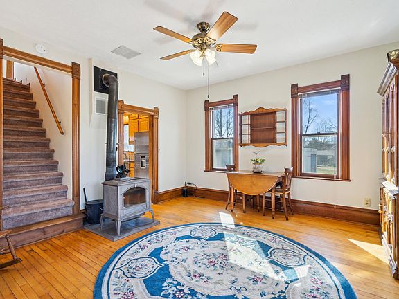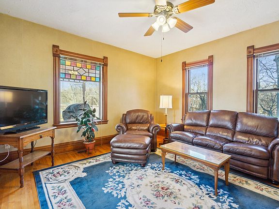 This timeless classic, has been lovingly, cared for, maintained and updated. From the large deck viewing over the baseball field, to the four garages, this one has something for everyone. Hardwood floors grace the main entrance, living room, and dining room. Travertine tile floors enhance the well appointed kitchen with lots of cupboards and back porch area. Floors are heated in the kitchen, back porch and main floor bathroom. There is also a bonus room on this level! You will love sitting on the back porch, plus, a glass surround holds the hot tub for relaxation after a long day. On the upper level there are 3 bedrooms and a full bath. The lower level is a hobbyists dream, three garages, workshop, hobby room and a family room. 3 zone heat keeps you warm/cool wherever you are. Stained glass windows add to the charm of yesteryear. All in quaint St Boni. Freezer in lower level and lawn ornaments are excluded from sale.