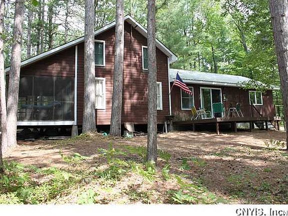 Three bedroom cottage on Brantingham Lake. The original portion of the cottage contains a dining/living room with fireplace, screen porch and two bedrooms. An addition added in the 1980s includes an additional bedroom, living room area, kitchen, bathroom and laundry room. 130' of waterfront, including the foundation of a former boat house. Located on the western shores of Brantingham Lake, watch breathtaking sunsets from the screen porch or dock.