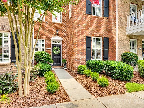 Welcome to this luxurious Charleston style townhouse-the perfect combination of glamorous and cozy. This gorgeous home features 10-ft ceilings downstairs, 9-ft ceilings upstairs, elaborate crown molding, waterproof Luxury Vinyl Plank flooring, California shutters, wooden drapery rods, luxe light fixtures, upscale hardware, new LG washer/dryer and a 2 car garage. The kitchen is updated with painted cabinets, new GE Cafe appliances, granite countertops, butler's pantry plus a walk-in pantry. The elegant, spacious living room is embellished with an ornate carved mantle, gas log fireplace and double French doors that look out on the private patio with mature trees. The primary bedroom showcases a tray ceiling and dual walk-in closets. The elegant bathrooms are fully renovated with marble top vanities, pristine marble primary shower, porcelain secondary shower, brass faucets and a claw foot tub. Convenient South Charlotte location near Stonecrest shopping center and the Bowl at Ballantyne.