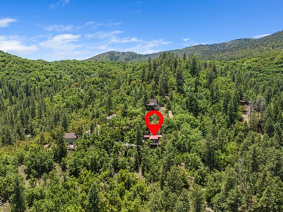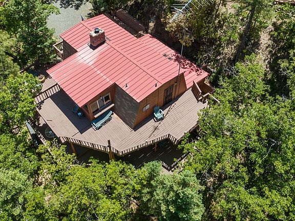 Located at the end of a cul-de-sac in Breezy Pines this 1970 Square Foot cabin offers privacy and is on 0.94 acres. Sit outside on the decks and enjoy the amazing mountain views and cool breezes. Inside you will find a nice open layout with a wood burning fireplace. There are 2 bedrooms and 1 bath on the main floor plus a large upstairs area with built-in-bar. There is a large shed at the front of the property for storing your toys as well as an additional shed at the back of the property. Most furnishings convey with the sale. Decks need repair - Being sold ''As is'' - $ 25K seller concessions offered.