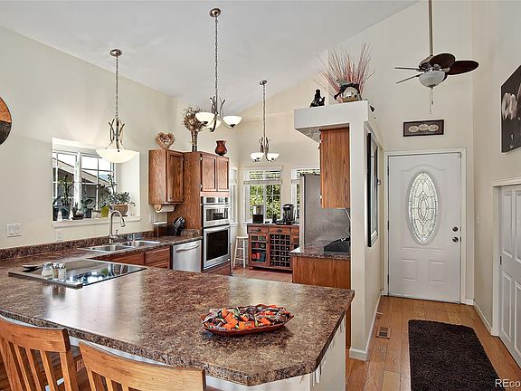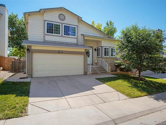 Classic design and a spacious layout await with this updated Marina Point tri-level! Hardwood flooring and vaulted ceilings with skylights welcomes you into a light-filled living room, anchored with gorgeous French doors to the backyard deck. The floor plan effortlessly flows into the kitchen with adjoining sun-filled dining nook, which offers modern stainless steel appliances, plenty of countertop space to make meal prep easy, and an abundance of rich wood cabinetry for all your storage needs. A large sit-in breakfast bar provides great seating for entertaining guests. Enjoy the lower level's cozy wood-burning fireplace with brick surround - a great space for family room entertainment or use a dining room to host large holiday dinners. An updated ¾ bath, laundry closet, and garage access complete the lower level. When it's time to unwind for the day, journey upstairs to find the home's 3 roomy and versatile bedrooms and an over-sized updated modern bathroom with a large walk-in shower with gorgeous tile surround. Plenty of storage can be found in the master bedroom's large walk-in closet and the crawl space's storage room. Enjoy summer evenings relaxing in the low-maintenance backyard where a large deck, patio, flagstone pavers, and beautiful landscaping create a peaceful haven. Ideally located near shops, restaurants, Chatfield State Park, and C-740 to get you to the mountains quickly, this move-in ready gem is a treasure waiting for you to move in and call it home!