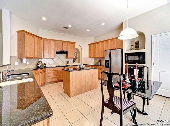 Light and bright, this one story is an entertainer's dream. Oversized, eat in island kitchen opens to ample living space, just perfect for merrymaking of any scale, both formally and informally. Ingenious floorpan offers something for everyone. Master suite includes sitting area overlooking the backyard. Right in the heart of Helotes, with easy access to 1604, employers and serious shopping.