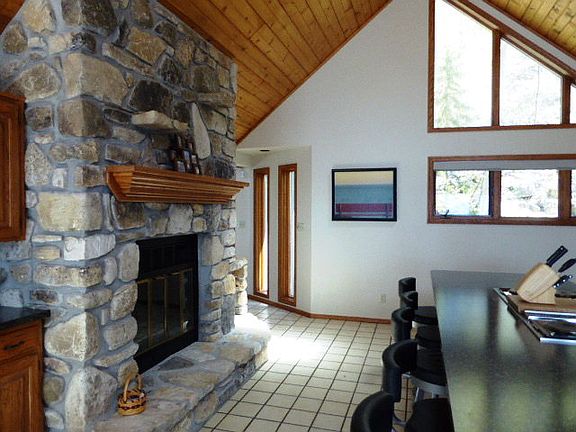 REDUCED--Sellers Relocating. Stunning Fish Creek waterfront home overlooking the Bay featuring incredible westerly sunsets. Four bedroom (split level for master suite privacy), 3 1/2 bath home is ideal for entertaining (Sellers can sleep 14 with ease) & shorefront fun, even an outdoor shower. Exceptional shore access: gently sloping lawns with perennial gardens to shore & pier. Sunny eat-in kitchen with fireplace next to living room with hickory floors, (3 total fireplaces) and walls of windows. Master suite wing has spa room & entry parlor with fireplace, separate sleeping wing for guests, 3 car garage. Recent changes include 4th bedroom, new decks and more. Door County's best location: close to Fish Creek & Egg Harbor on the shore.