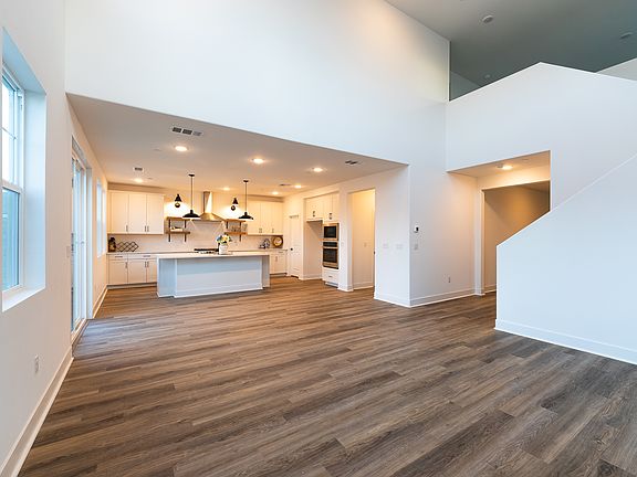 Gourmet kitchenOpen-concept layoutSleek wood flooringStainless steel appliancesAmple storageLarge quartz island