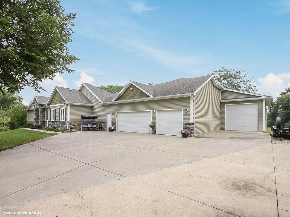 Check out the 3D Virtual Tour Large 5 bedroom ranch just outside of Norwalk, on pavement Very private 1.45 acre lot at the end of the cul-de-sac. Prepare to be amazed with this garage set up 3 car attached garage + 1,500 sq ft attached addition. Complete with 2x6 const, 12 ft ceilings, floor drain, wash bay + more This garage is a dream Over 2,100 square feet on the main level with open plan. Enter the home into the foyer with formal dining area & perfect size home office nearby. Inviting vaulted living room gas fireplace looks out to beautiful yard. Open kitchen with all appliances included, plus pantry for extra storage Recently remodeled master bath with glass tiled shower, heated floors, marble counters, Jacuzzi tub & double sided gas fireplace. 2 more main level BR. Walk out LL features 9 ft ceilings, full bath, 2 BRs, large living space and plenty of storage Enjoy some green space, lots of storage & be close to town. Norwalk schools & minutes to WDM.