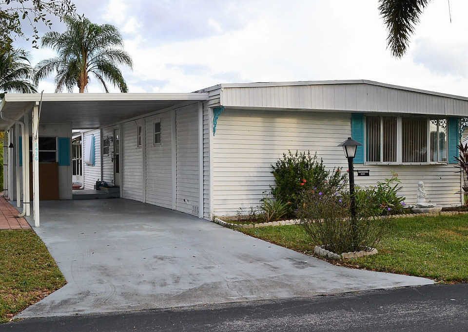 Rarely available lakefront double wide coach in popular 55+ West Lakes of Boca Raton. This home features an open floor plan with tile throughout. Newer appliances, updated kitchen back-splash and counters. Enjoy relaxing lake views from the spacious screened patio. Master suite has a large walk-in closet, second linear closet. Full-size washer and dryer in shed. $160/mo maintenance fee includes lawn care, community pool, clubhouse, and cable with HBO. West Lakes is located just west of Florida's Turnpike on Glades Road. This active and friendly community features clubhouse, pool, picnic area, shuffleboard, and bocci ball courts. Shopping, beaches, and golf courses are nearby. It's a great place to call home!