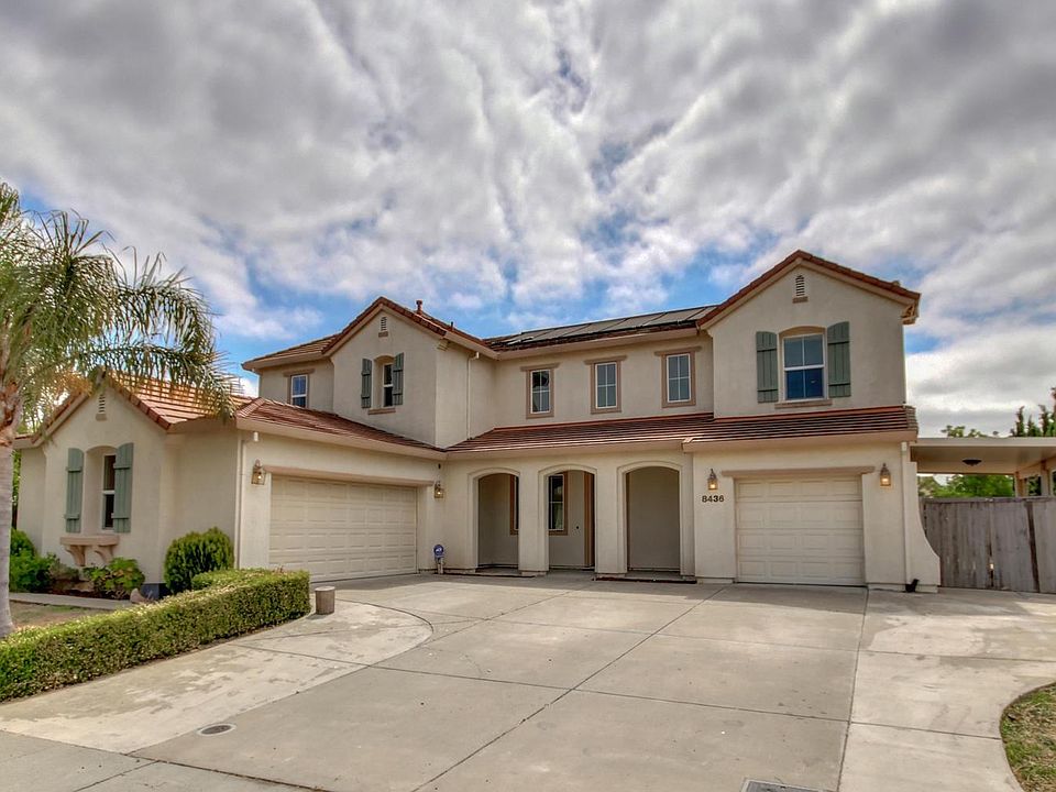 Just in time for summer to enjoy the sparkling swimming pool! Fantastic home with just shy of 3500 square feet of living space. Two Master Suites with one located downstairs. Total 4 bedrooms and 3.5 baths Large kitchen has generous amount of cabinets, large island and pantry. Family room has built in entertainment center. Formal living & dining rooms. Upstairs loft (could easily be turned into another bedroom) upstairs laundry room with cabinets. Great corner lot with side yard access plus three car garage. Solar for pool is owned. Close to shopping, schools and easy access to freeway. Do not miss your opportunity to own this great home.