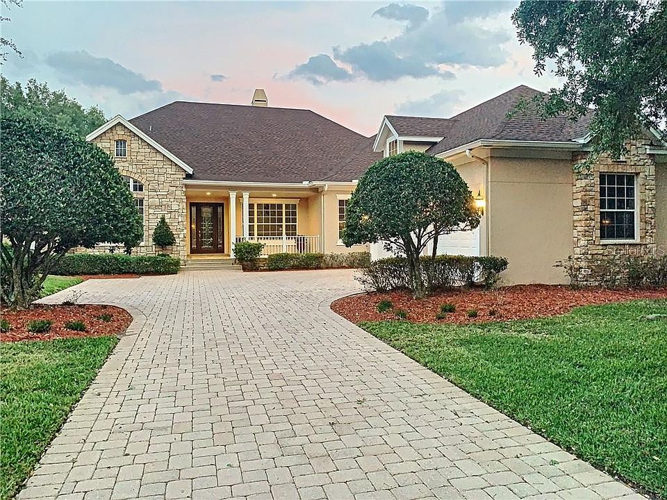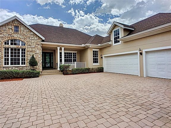 Keene's Pointe - 24-hour gated/attended community. This home offers 5 bedrooms and 5 1/2 baths, formal living and dining rooms and an optional bonus/hobby/storage room. The open foyer greets you with the formal dining room and living room with gas fireplace and sliding glass doors overlooking the lanai/pool area. Directly off the entry is a half bath, office/study and private master suite with sliding glass doors to the lanai. There are 2 MASTER CLOSETS and spacious master bath with jetted tub, large shower and two vanities. The opposite side features the kitchen and family room with an abundance of lighting and sliding doors to the lanai, as well as THREE FIRST FLOOR SECONDARY ENSUITE BEDROOMS and laundry room. The second floor has the FIFTH ENSUITE BEDROOM, which could also serve as a bonus/game room and an additional bonus area that could also be a hobby room, second office or storage. There is also a 3 car garage with additional golf cart door and parking and spacious paved driveway. The lanai is covered and can be accessed from the master suite, living room or kitchen/family room. There is a summer kitchen and swimming pool/spa with rock accent. The fenced back yard has plenty of room for pets or play equipment. This home has been recently painted inside, new laminate hardwood flooring, and a NEW ROOF IN 2018. Easy to show, call today for an appointment.