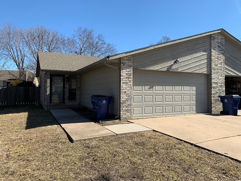 A nice 2 bedrooms, 1.5 bathroom, 2-car garage duplex with a huge fenced yard sitting in a cul-de-sac. 4 minutes away to McConnell Air Force Base. Rent included mow service. Extra long driveway can park 6 regular size cars. Quiet neighborhood Excellent living condition Lot size is approximate 1/3 acre (rent includes mowing service) Fenced backyard Owner pays for lawn service. Renter pays for water, gas, electric and trash service. Maximum 1 small pet allowed (non-refundable deposit required). No smoking inside.
