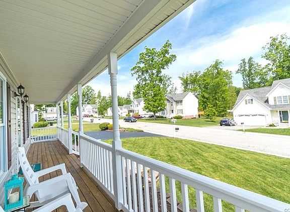 Hurry this gem will not last the weekend! Beautiful Farmhouse style Colonial with a full front porch on over 1/3 acre! 5 Bedrooms 3.5 Baths - 2 Master Suites! Formal Dining Room w/French Doors, Completely remodeled Kitchen w/Granite Counters, Upgraded Cabinets, Stainless Appliances w/Double Oven and Smooth top Range. Breakfast nook w/Bay Window, Big Family Room w/2 ceiling fans, exposed beam in ceiling, surround sound and exit to huge 2 level deck! Plantation shutters throughout main level. Master Suite w/Vaulted ceiling, ceiling fan, Walk-In Closet & Luxury Bath w/double vanity. 3 additional generous bedrooms and the second Master Suite w/Private Bath, perfect for extended families, guests or teen suite! Laundry on second level. Very well kept yard w/nice landscaping and great curb appeal! Vinyl privacy fence encloses the back yard w/storage shed and playset. Newer HVAC and Roof, new fixtures throughout, full irrigation, multi tiered deck, 2 car garage, paved driveway and full country porch. This house is truly a home and is ready for its new owners to love and care for it the way the current owners have! This home will not disappoint! See pics & video tour!