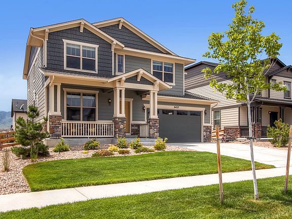 This lovely home in Leyden Rock is just a little over a year old & is located on a quiet street w/mtn views. It is just a block from the community clubhouse and pool. The main floor has dark stained wood floors & is light & bright w/the family room & kitchen open to each other. There is ample space for seating at the kitchen island & breakfast nook. The gourmet kitchen is tastefully done w/white shaker cabinets, slab granite counter tops & SS appliances. The stove top is gas w/a nice flat burner surface for all your cooking needs! In addition to the open rooms on the main floor there is a living room, a half bath and great storage closet. Upstairs is the master bedroom suite (5 piece bath), laundry room, full bathroom and two additional bedrooms. The basement is unfinished and ready for your own personal touches. The yard is professionally landscaped with sprinkler system, patio and front porch. The garage is a 3 car tandem.