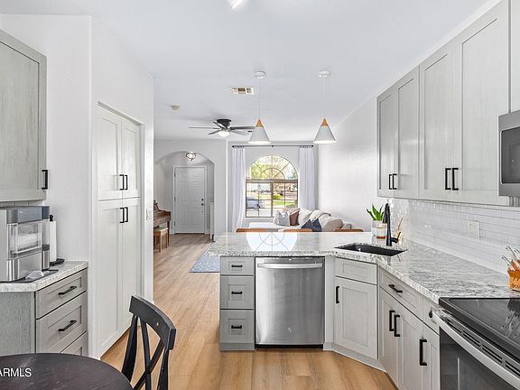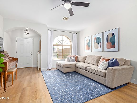 Welcome Home! Renovated & completely turn key home w/ over 75k in recent updates now available. Open concept plan showcases new paint, flooring & 5'' baseboard throughout. NEW energy efficient A/C in 9/22. Light & bright, newly designed eat-in kitchen boasts 42'' shaker hardwood cabinets & pantry, granite counters, backsplash, breakfast bar, & ss appliances w/ the fridge, w&d included. Spacious master features a walk-in closet & ensuite bathroom w/ new vanity, lighting, faucets, marble counters & dual sinks. Backyard showcases covered patio, gazebo, misters, pavers, new sprinkler system & natural turf w/ no neighbors behind. HOA includes yard, roof & exterior maintenance, sparkling pool, BB court, & lush greenbelts. Located near 202 & 60 freeways & an array of dining & shopping options. Property has been virtually staged for appeal.