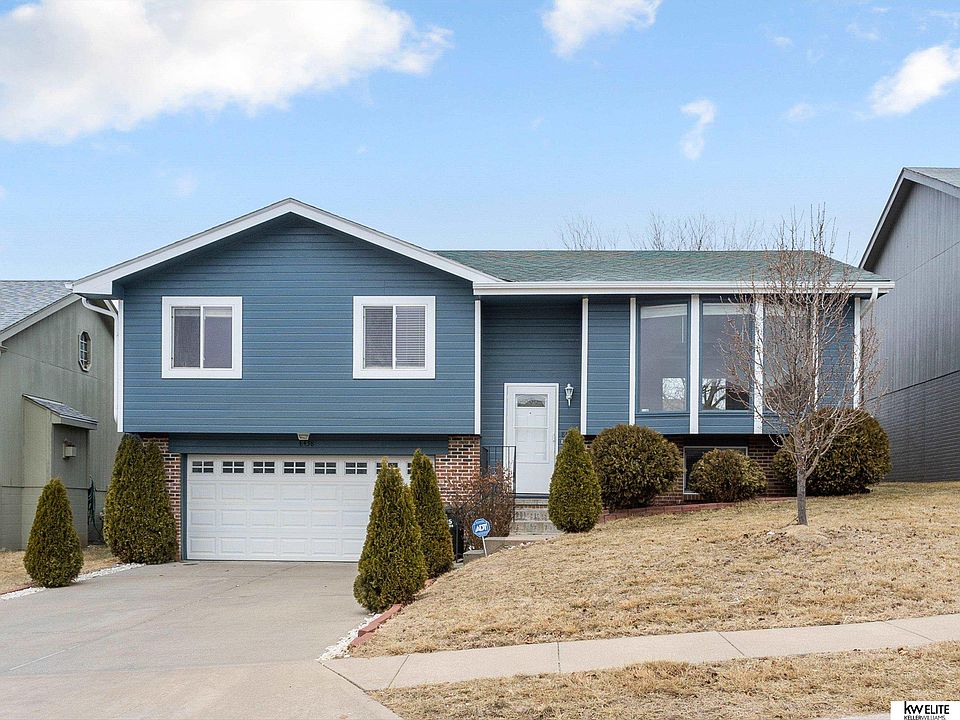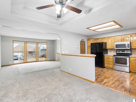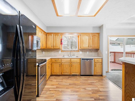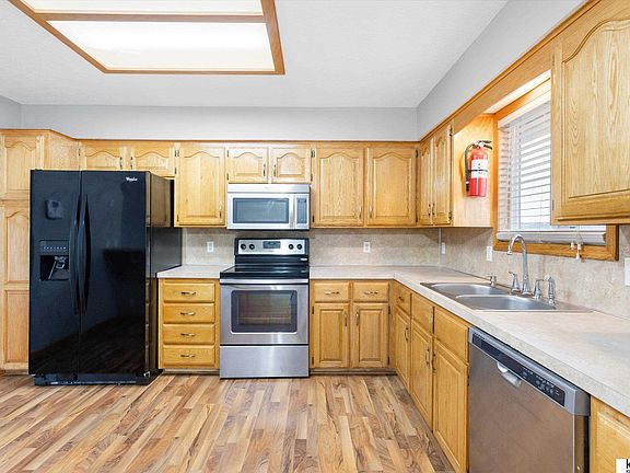 This split entry with Open Floor plan features a large kitchen with breakfast bar, a primary bedroom with 3/4 bath & walk-in closet, and a finished lower level with fireplace and a third bath. The spacious backyard offers a generous deck.