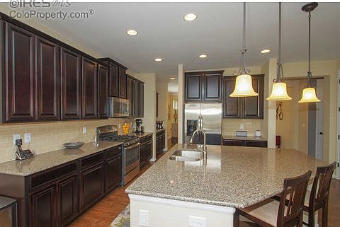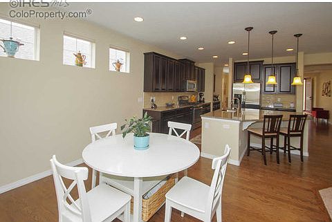 Better than new! This home filled with WOW factor looks like a model home. Spacious chef's kitchen w/large island has espresso cabinets, granite, dark stained wood floors, subway tile backsplash, stainless appliances & butler's pantry. Perfect floorplan w/4 beds, 3 baths &large loft up. Extended, covered wrap around deck is perfect for entertaining. Full walk out basement, crown molding, custom mud room, fireplace & designer paint & lighting. Fantastic community w/great schools, pool &clubhouse.