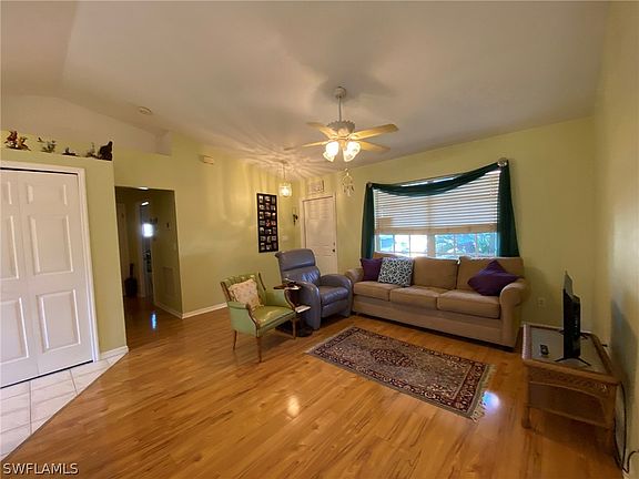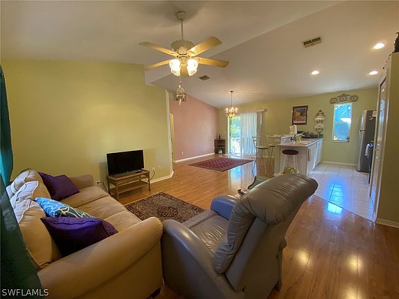 This home was an Amber Homes Sunseeker Model when Seller purchased the home in 1998 making this a one owner home! The home features a cathedral ceiling with Plant shelves to decorate! Open great room floor plan, easy for entertaining. Big back yard, so there is room for a pool! Backyard offer a tropical feeling because it is lined with Areca palms to offer privacy! New roof going on now ~ will be completed before closing! There is a guest staying at the home on a month-to-month basis, and we will give notice as soon as we are provided proof of funds or financing is approved. 30 days' notice is required for guest to move out. No damage to the interior of the home from Hurricane Ian. A little bit of tree damage and some shingle damage but the roof is being replaced to cover that! Wonderful family home or great investment because of its close proximity to the Florida Gulf Coast University campus!