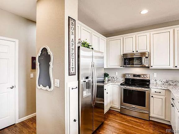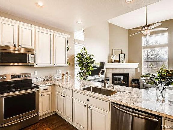 One of the best lots in Five Parks backs up to Haskin Park & has stunning Mountain Views! Updated! Main floor master is the perfect compliment to low-maintenance living. The master is large & has room for a desk or sitting area, walk-in closet & spa-like bath. Lots of hardwood floors in the dining room, great room & bright, open kitchen. Creamy white cabinets, stunning slab granite & SS Appliances w/ gorgeous views! Also a powder bath & laundry on this floor. Upstairs hosts a private suite w/ bedroom, full bath & loft w/ sweeping Mountain Views. Large basement is finished w/ the 3rd bedroom, 3/4 bath and spacious rec room w/ wetbar. Also lots of storage. Covered back patio & front porch. Perfectly maintained inside & out w/ new exterior paint & roof, this patio home offers snow removal & exterior maintenance. Just steps from walking paths, neighborhood pool/gym & restaurants. Best Lot and house around Haskin Park!