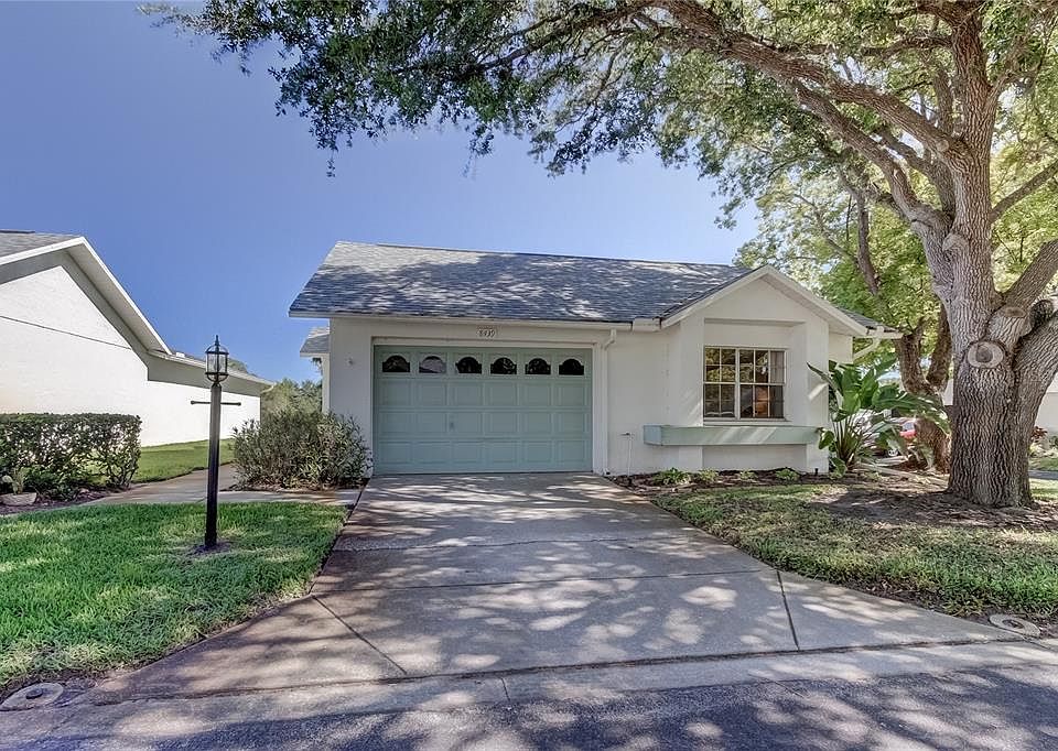 Here is your chance to own one of the very limited free-standing villas in the 55+ community of Timber Oaks! No sharing a wall with your neighbor plus you’ll have your own 1.5 car attached garage. This home sits on a corner lot overlooking the pond. You’ll have a great view from your screen enclosed lanai with ceramic tile flooring and no back neighbors! The roof was just replaced in 2020 and the homes were recently painted with new and updated colors! The open floor plan includes the living and dining room area with laminate flooring and double sliding glass doors to the lanai. The primary bedroom also has laminate flooring and a huge walk-in closet. The primary bathroom has a ceramic tiled floor with a double sink vanity and a ceramic tiled step-down shower. The second bedroom is on the opposite side of the home with laminate flooring plus an oversized walk-in closet with the bathroom nearby. The bathroom has a bathtub with a shower and ceramic tiled floor. The ceramic tile flooring continues in the kitchen and includes a kitchenette area for a breakfast table by the windows that let in lots of natural sunlight. There is also a door leading to the garage for quick and easy access to your washer and dryer! This community has lots of amenities. The gorgeous clubhouse pool is heated which includes a spa with a view of the lake! There are also tennis and pickleball courts for the active ones along with dances, shows, art & crafts, billiards and a card room. Nothing is left out in this community! Your fee also includes lawn maintenance, cable, internet, exterior maintenance including your roof, termite treatments and your irrigation system. Small pets are welcome! Call today for your private showing!