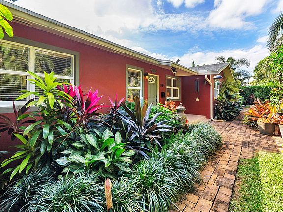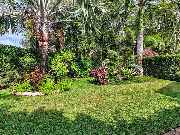 Florida Oasis in Historic Flamingo Park! This 3BR/2BTH renovated home with impact windows is situated on a 1/4 acre lot in the heart of West Palm Beach. Magically landscaped & surrounded by tall hedges for the utmost privacy. Paver walkway & covered entry. Light filled living room, open kitchen with spacious countertops, white shaker cabinets & stainless-steel appliances. Florida room with views of the pool, currently used as dining room. Large primary suite features walk-in closet & ensuite bath. Split floor plan, 2 additional bedrooms with ample closet space & a full bath. Paver patio, heated saltwater pool plus gorgeous, lush & mature tropical landscaping making the backyard a true sanctuary. Carport parking for 2 cars with gated access from rear alleyway.