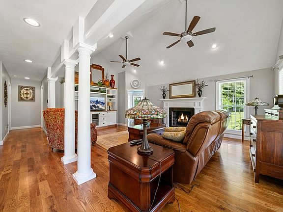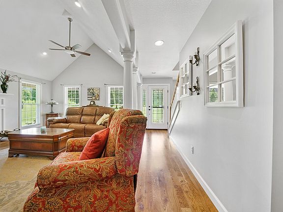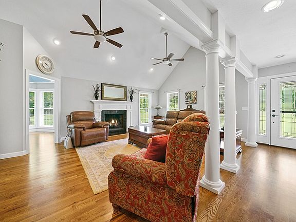 Peaceful country living at it's finest! This stunning custom built home has beautiful landscaping and porches for sipping sweet tea and looking over your own mini farm. Inside you'll find gleaming hardwood floors, a great room with woodburning fireplace, treyed ceilings, custom cabinetry and an impressive master suite! Take advantage of the flex space in the bonus room upstairs. Outside, enjoy the privacy of the acreage, the two springs on the property, and outbuildings including a 4 bay implement shed and charming detached 2 story garage and workshop you need to see to appreciate with cedar sided interior walls. This home is well maintained with an encapsulated crawlspace.