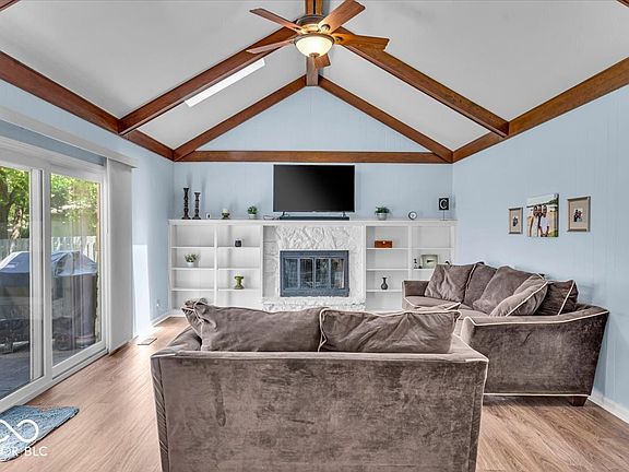 Welcome to Carmel's Hunter Creek Village! This beautiful home offers 4 bedrooms, 2.5 baths, and over 2100sqft. Located on a cul-de-sac and next to the Monon Trail, this residence boasts a family room with cathedral ceilings, built in shelves and a wood-burning fireplace. The gorgeous .35-acre lot features mature trees, a playset, and polished landscape! Enjoy no HOA fees, a minute's drive to Clay Terrace, and quick access to Route 31 for an easy commute to Indianapolis. The home is in close proximity to award-winning Carmel Schools and the Arts and Design District. And so many updates: New Roof 2024, New Luxury Vinyl Flooring on Main 2023, New Concrete Driveway 2021, All Windows and Front/Sliding Door Replaced 2019, New Garage Door and Motor 2019!