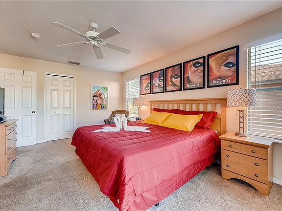 This home is the dream for all vacationers featuring 4 amazing themed rooms. Tastefully decorated throughout with Disney touches that you and your guests will love. Excellent investment opportunity or full time residence! This 4 bed and 3.5 bathroom home offers the resort lifestyle in the highly desirable gated community of Regal Palms and Spa. Regal Palms Resort features an expansive POOL with water slide, lazy river, spa, club house, beach volley ball, onsite restaurant and bar, fitness center and playground. 2020 bookings to transfer if current management company is retained. Don't let this opportunity slip by!