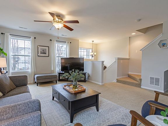 Lives like NEW in this stunning Cambridge Lakes end-unit townhome. This 2 bedroom / 2.5 bath has fresh paint throughout, Updated lighting and baths. Spacious living room with southern exposure to allow plenty of natural light. The generous eat-in kitchen boasts new floors, new granite countertops, tiled backsplash and opens to a large deck to enjoy during the warmer months. The second level offers two generous bedrooms, each with their own bathroom! For added space, the finished lower level offers a flexible space to entertain, work from home, or e-learning. The two car garage allows for additional storage beyond the space under the steps to the lower level. Enjoy the amenities of Cambridge Lakes: pool, clubhouse, walking trails, playgrounds, baseball diamonds, and more! Don't miss out on this one!