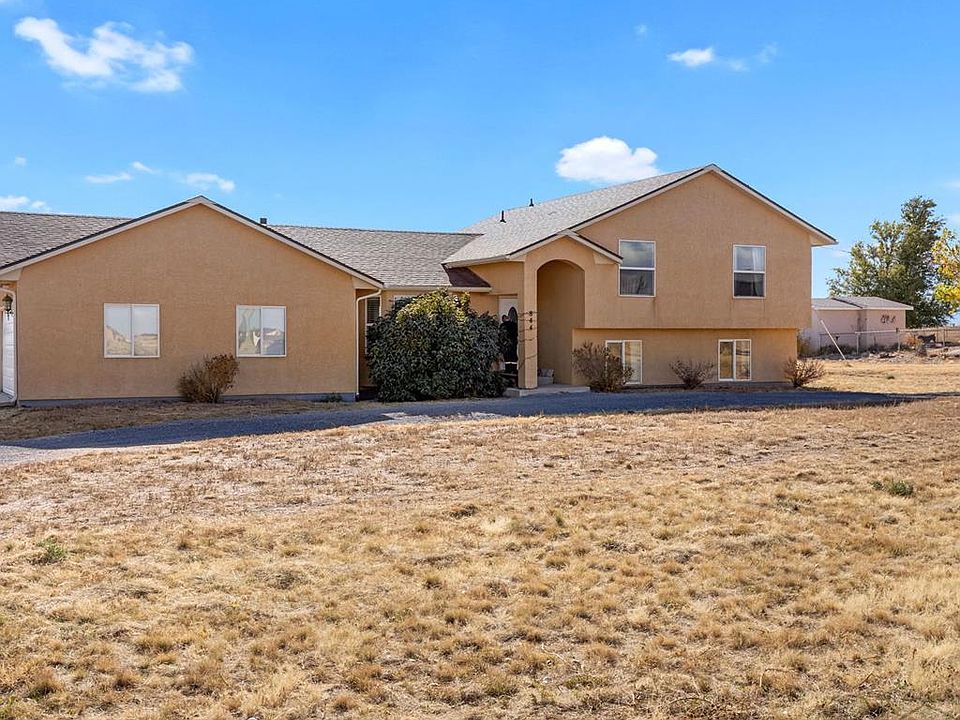 Spacious 4 bed, 3 bath home has oversized 3 car attached garage and sits on just over an acre in Pueblo West. Stunning views of the Greenhorn Mountain, Spanish Peaks and Pikes Peak. Tiled front entry and open concept layout with vaulted ceilings. Kitchen Stainless dishwasher and french door refrigerator with bottom freezer. Elevated eat-at bar area adjacent to dining room. Master bedroom is enormous and has giant walk in closet as well as ensuite bath with dual vanity, walk-in shower, and soaking tub. Large additional bedrooms are a huge plus in this home as is lower level also features full bath and dual vanity sinks. The family room has a gas fireplace and fits a sectional! It could be also used as a rec room, game room or theatre room if desired. Basement is unfinished and has egress window so could add a 5th bedroom. Sliding patio door from dining area leads out to large composite deck. The rear yard is fully fenced and has a stone fire pit for roasting marshmallows on those cool evenings. Home has central air and forced air furnace. Roof was replaced in 2019. Come and see this awesome home today!