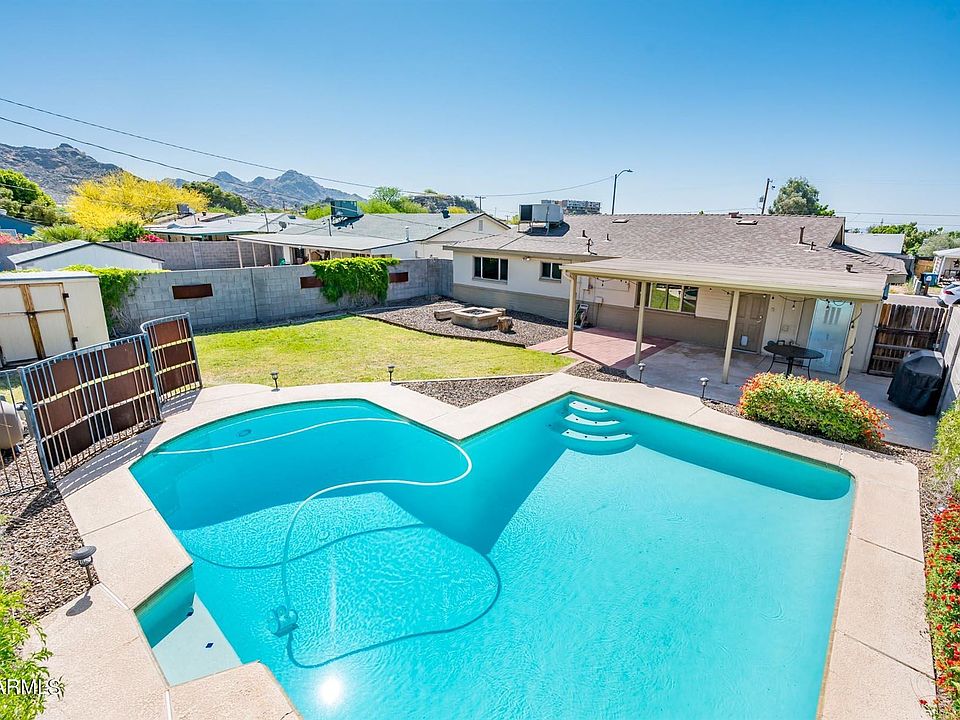 Welcome and get ready for pool season! This home offers a wonderfully large pool, mountain and sunset views, covered patio, grass lawns and gas fire pit. Situated in desirable North Central Phoenix, your 3-bedroom 2-bath home has an excellent floor plan: family & living rooms, laundry room, and a large eat-in kitchen that looks north onto backyard. Enjoy wood blinds, ceilings fans, stainless steel KitchenAid gas range/oven, microwave/hood, and French door refrigerator. 2012 remodel granted new baths, kitchen, energy-efficient windows and new pool plaster. Roof and water heater are 2020. Tree-lined path at 10th Street takes you to Arizona Canal Trail, and check out Alicia and Palma Parks to the north. Proximity to SR-51, airport & all things Central Phoenix.