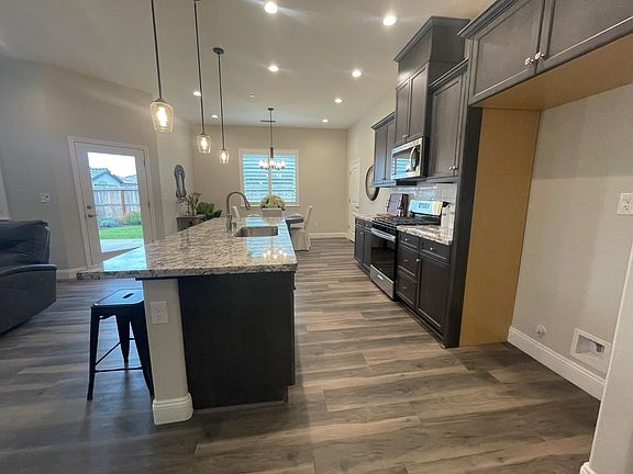 Stunning Energy-Efficient Model Home Built in 2023 - Solar Included!Welcome to this beautifully maintained 4-bedroom, 2-bath model home offering 1,777 sq ft of thoughtfully designed living space on a 6,098 sq ft lot. From the moment you step inside, you'll be impressed by the luxury vinyl flooring that flows seamlessly through the living room, dining area, kitchen, and hallways, creating a warm and modern feel. Built in 2023 with energy efficiency in mind, this home includes owned solar, helping you save on utility bills.The open-concept kitchen and living area is perfect for entertaining, featuring granite countertops throughout, stainless steel appliances (stove, microwave, and dishwasher), two spacious pantries, and elegant plantation shutters.Enjoy indoor-outdoor living with a finished backyard complete with a covered patio and an extra gas line, ideal for creating your dream outdoor kitchen or BBQ area.Located across from a future park, this energy-smart home combines comfort, style, and conveniencetruly move-in ready and built for modern living!