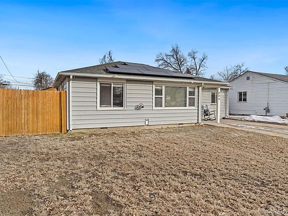 Wonderful 2 bedroom, 1 bathroom home located in the heart of Aurora. As you enter the updated home you are drawn to the bright and open floor plan. Entertain family and friends in your kitchen/dining area featuring a spacious stainless steel refrigerator. The living room, right off the kitchen boasts additional flex space which can be used for an office or additional dining space. Retreat to the open backyard with a concert slab for a nice cup of coffee or afternoon lunch! This home also has Solar Panels which were just installed in 2022 and will be paid off by the owner! HVAC was replaced in 2021, water heater in 2022 as well as plumbing and electrical has recently been replaced/updated! The home is located near the Community College of Aurora Lowry Campus, the Denver Museum of Nature and Science and Stanley Market Place! You won't want to miss out on this opportunity whether you are looking for a new home, rental, or a property you can build some equity fast!