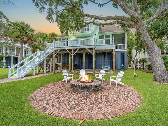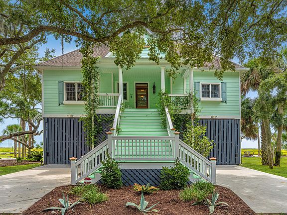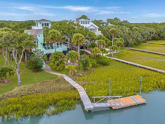 Stunningly Beautiful Custom-Built Home with never-ending Ocean/Creek/Marsh views. This home is nestled among the mature Live Oaks and Palmettos in the gated community of The Hammocks. This home features an open floor plan with amazing views from all 3 levels. You'll have fun entertaining your guest from the gourmet kitchen complete with marble and wood countertops, Viking appliances, and plenty of custom cabinetry. Beautiful heart pine floors throughout. The large living room provides plenty of room for family and friends and gas fireplace for those chilly winter nights. The master suite can be found on the main floor with access to a private screened porch. Upstairs are 3 additional bedrooms, one of which has its own private bath.The middle bedroom is extra-large and could also serve as a great family room. There's also a vented gas fireplace in this room. Up the spiral staircase the cupola serves as the crown-jewel of this property. With amazing views, a porch that wraps all the way around, and a wet bar, you may find yourself here often. Underneath the home is plenty of storage, space for parking multiple cars and an outdoor shower. Around the backside of the home, you'll find a custom outdoor kitchen, bed swing, and firepit overlooking the deepwater dock. Bring your small boat to keep at your dock and enjoy fishing, crabbing, and playing in Scott Creek. Being sold beautifully furnished with few exceptions.