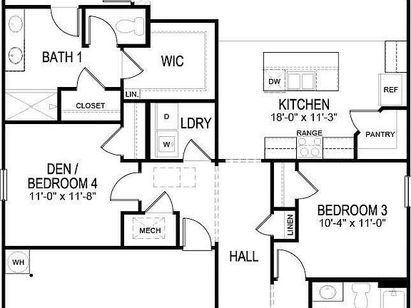 This single-story layout optimizes living space with an open concept kitchen overlooking the living area, dining room, and covered patio. Entertaining is a breeze, as this popular home features a spacious kitchen island and kitchen pantry for extra storage. The primary bedroom is located off the living space in the back of the home for privacy. The primary bedroom also includes a walk-in closet with a spacious bathroom. At the front of the home, two additional bedrooms share a second full bathroom. Across the hall is a fourth bedroom. This home features a space to fit all your needs. Tradition Series Features include 9ft Ceilings on first floor, Shaker style cabinetry, Solid Surface Countertops with 4in backsplash, Stainless Steel appliances by Whirlpool, Moen Chrome plumbing fixtures with Anti-scald shower valves, Mohawk flooring, LED lighting throughout, Architectural Shingles, Concrete rear patio (may vary per plan), & our Home Is Connected Smart Home Package. Seller offering closing cost assistance to qualified buyers. Builder warranty included. See agent for details.