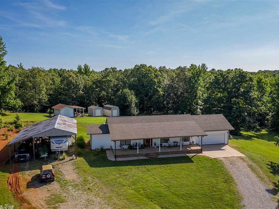 1536+/- sq ft 3 bed 2 bath home on 34+/- acres and a pond. Newer roof and wood flooring. 30x40x12 barn and outbuilding with attached lean-to. Home has an attached two car garage, built in generator, central heat/air, and exterior wood stove to heat as an alternative. Paved road frontage. House has a an access down to what some will use as a basement and others will call it a safe room. The master bedroom has an area that is currently being used as an office but is also considered a bedroom.