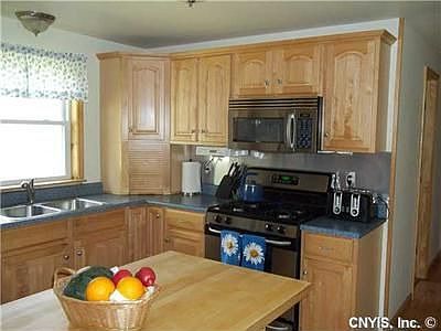 Great Scriba ranch...don't be fooled by the exterior- come inside! Spacious, updated 4 BR, 2 BA, tons of cabinets in kitchen w/ stainless appl. and an island, formal dining, 3 BR and new full bath complete the main level. Downstairs you'll be impressed w/ Lg. LR, Master w/ Lg walk in closet, full bath, laundry and another room to use as you please. Outside you will find almost 1 acre w/ a 30x40 garage heated, insulted, water, 1/2 bath, deck off back to a/g pool, also 2 storage sheds 12x12 & 10x10. This home has it all including a nice location!