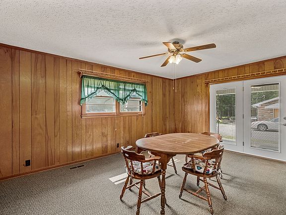 Welcome to this charming ranch-style home situated on a large .7 of an acre corner lot, offering a perfect blend of comfort, convenience, and outdoor living space. With its spacious layout, this 1,256 sq ft residence provides a delightful living experience. Upon entering, you are greeted by a warm and inviting living area that serves as the heart of the home. The traditional floor plan allows for a seamless living area flow between the living room, dining area, and kitchen, creating an ideal space for entertaining and daily family activities. Additionally, this home offers the convenience of an oversized garage, providing extra space for vehicle parking and storage needs. Also, there is a large patio above the garage. Storage building and carport to remain. Hardwood under some carpet.