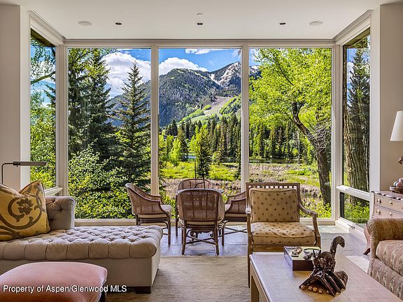 Rarely does a property of this caliber become available for sale. Located on the prestigious Roaring Fork Road, this timeless and modern home overlooks Hallam Lake's 26-acre wildlife preserve, offering breathtaking, unobstructed, and forever protected views of Aspen Mountain and Independence Pass. Step outside to hear the sounds of nature and the Roaring Fork River. This property offers incredible privacy while being in close proximity to the Aspen Music Festival, Aspen Institute, and downtown Aspen. The special feeling of solitude at this property embodies the 'Aspen Idea,' a philosophy promoted by Walter and Elizabeth Paepke, where mind, body, and spirit can flourish. Thoughtfully designed to harmonize with nature, the home is approachable and elegant from the exterior, saving the 'wow' factor for when one enters. Offering an easy floor plan that maximizes the stunning views from every room, features include four generous bedroom suites with the primary suite conveniently located on the main level, second entertaining area, lovely outdoor patios and spacious, flat yard. This is a once in a lifetime opportunity to own one of Aspen's most iconic properties in the West End.