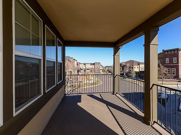 Experience the best of urban living in Highlands Ranch Town Center. Thoughtfully designed one level carriage house condo with walk up from over-sized, two car attached garage. Enjoy summer nights on the large, covered deck entertaining friends. Sunsets with mountain views are the best from the private balcony off the master bedroom. Lux finishes and features include wood laminate flooring, granite counter tops in kitchen, stainless steel appliances, beautiful cherry cabinets with lots of storage and gas range. Gas fireplace, washer and dryer and window coverings all included. Walk to the farmers market on Sundays at Town Center, picnic at Civic Center Park. Shopping and dining just minutes away. Easy access to the RTD Park and Ride. Full access to 4 recreational centers and amazing trail system. This home is move in ready and won't last.