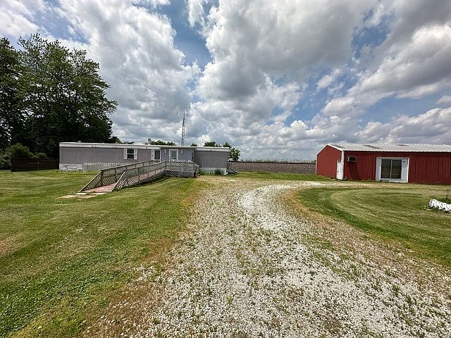 This 4 bedroom manufactured home is nestled on an almost 1/2 acre lot with 30x20 pole building. Features a ramp for handicap accessibility to the enclosed porch; Kitchen with oak cabinets & large pantry with cabinets; Large, sun-filled living room with built-in entertainment center; Master bedroom with direct access to the full bath; Desirable pole building with 10' door. New Furnace. Sold as is.