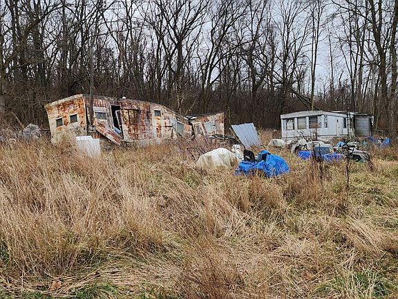 4.5 Acres mostly wooded, beautiful creek bottom view across the road. Seller will not clean up the property, no septic, no water. Previous electric meter onsite.
