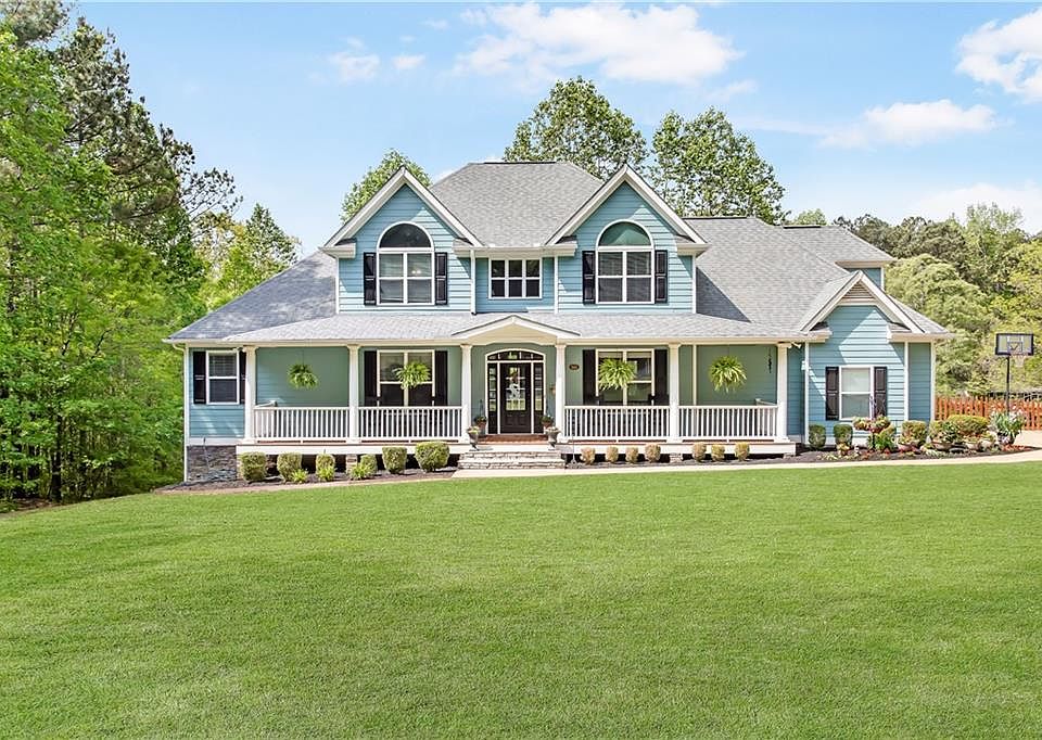 Welcome to this stunning custom-built home situated on a private 2.52-acre lot. With its thoughtful design and upgrades, this home offers a luxurious and comfortable living experience. As you enter, you'll be greeted by a grand two-story living room boasting 18-foot ceiling and custom built ins. Throughout the home, you'll find exquisite trim work and lighting upgrades. The kitchen features a double stainless steel oven, a convenient walk-in pantry and breakfast room. Included on the main floor is a separate dining room, as well as home office. The main floor features a master suite, offering a tranquil retreat. The master bedroom boasts a double tray ceiling. The en-suite bathroom is complete with a walk-in shower, Jacuzzi tub, double vanity, and his and hers closets, providing ample storage space. The home offers a total of four bedrooms, including the master suite and an additional en-suite bedroom. All upstairs bedrooms feature cathedral ceilings, adding an open and airy feel to the spaces. The large bonus room provides a versatile space that can be used as a playroom, media room, or home office. Other notable features of this home include a professionally coated garage floor, an irrigation system, and a security system for added peace of mind. The HVAC systems for both the upstairs and downstairs were recently replaced in 2021 and 2022, respectively. The hardwood floors have been recently refinished. Additionally, new carpet and padding were installed in 2020. The full unfinished basement presents endless possibilities, already stubbed for a bathroom, with electrical installed and a garage door for easy access. The upgraded 400-amp electrical panel ensures ample power for all your needs. Step outside and enjoy the serenity of the fenced backyard, perfect for entertaining or relaxing on one of the two large porches.