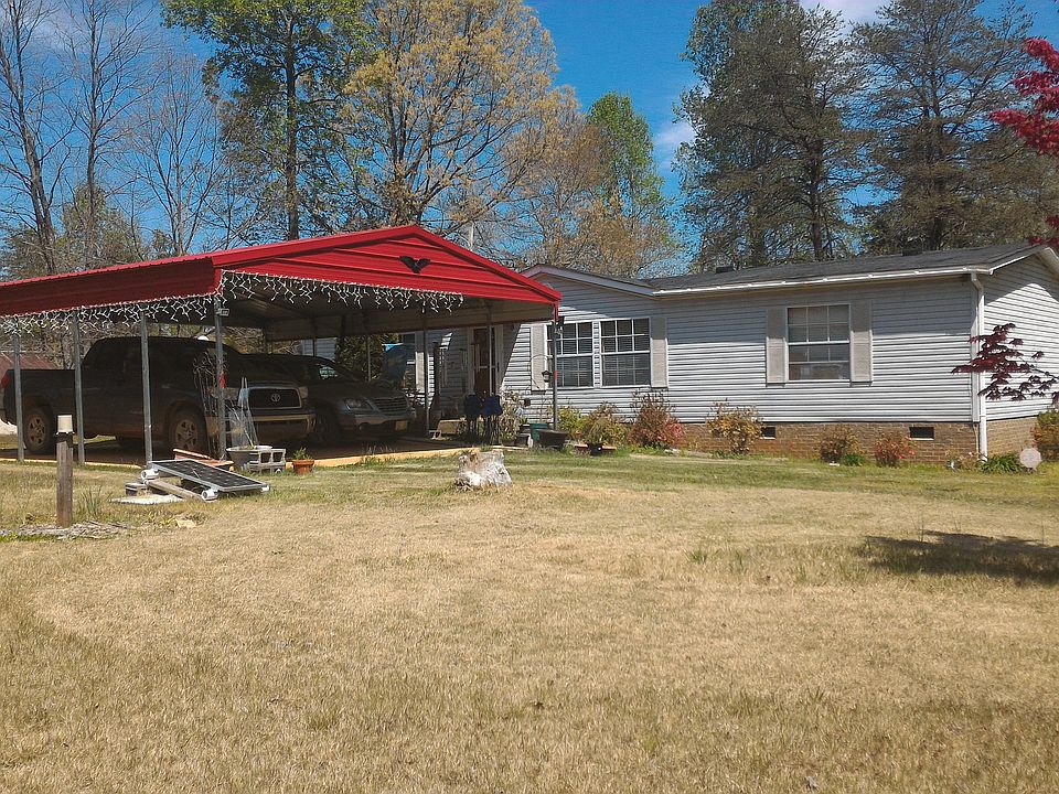Fixer upper with lots of potential. The dirt road is rough getting there but what privacy you will have. Convenient location with great schools! 2 Car carport and 2 sheds in back for plenty of storage. Stainless steel range/oven and above counter microwave. Kitchen island with plenty of cabinets. Garden tub and shower in master bath. Circle gravel drive with lots of room. New roof in 2008 per seller. Come and make this private setting yours to enjoy.
